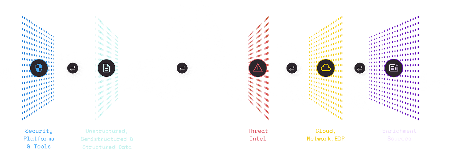 AI connects the security ecosystem and analyzes structured and unstructured data where it is… no ETL required.