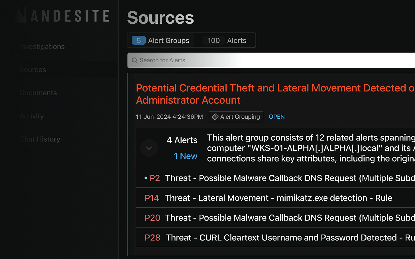 Andesite's AI prioritizes key alerts, threat intelligence, and data to accelerate and automate investigations and enrichment. The Human-AI SOC is here.